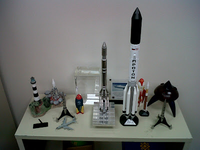Here’s the rocket garden in my office. Picture not taken in my office, of course, since that’s not allowed. I moved everything outside. Great Art courtesy of my new Blackberry, which has a 2MP camera, just like my beloved iPhone.
